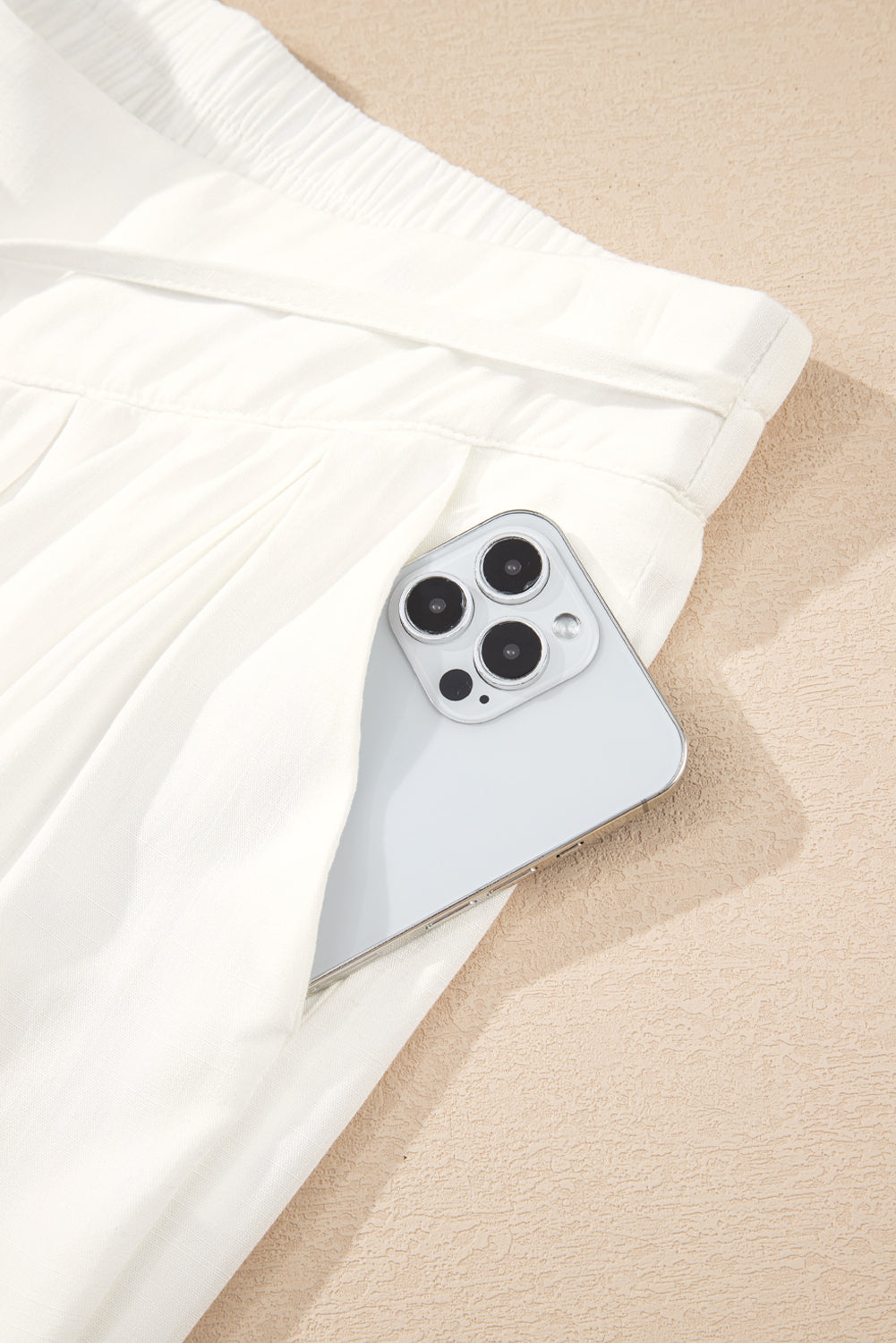 White Solid Drop Waist Pleated Wide Leg Casual Pants